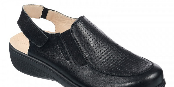 Верх выполнен из натуральной гладкой кожи чёрного цвета, подкладка, также кожаная, обладает мелкой перфорацией, обеспечивающей непрерывный влаго- и теплообмен при ходьбе. Несъёмная ортопедическая стелька с покрытием из натуральной кожи дополнительно амортизирует каждый шаг, оберегает от развития деформационных процессов в ногах.